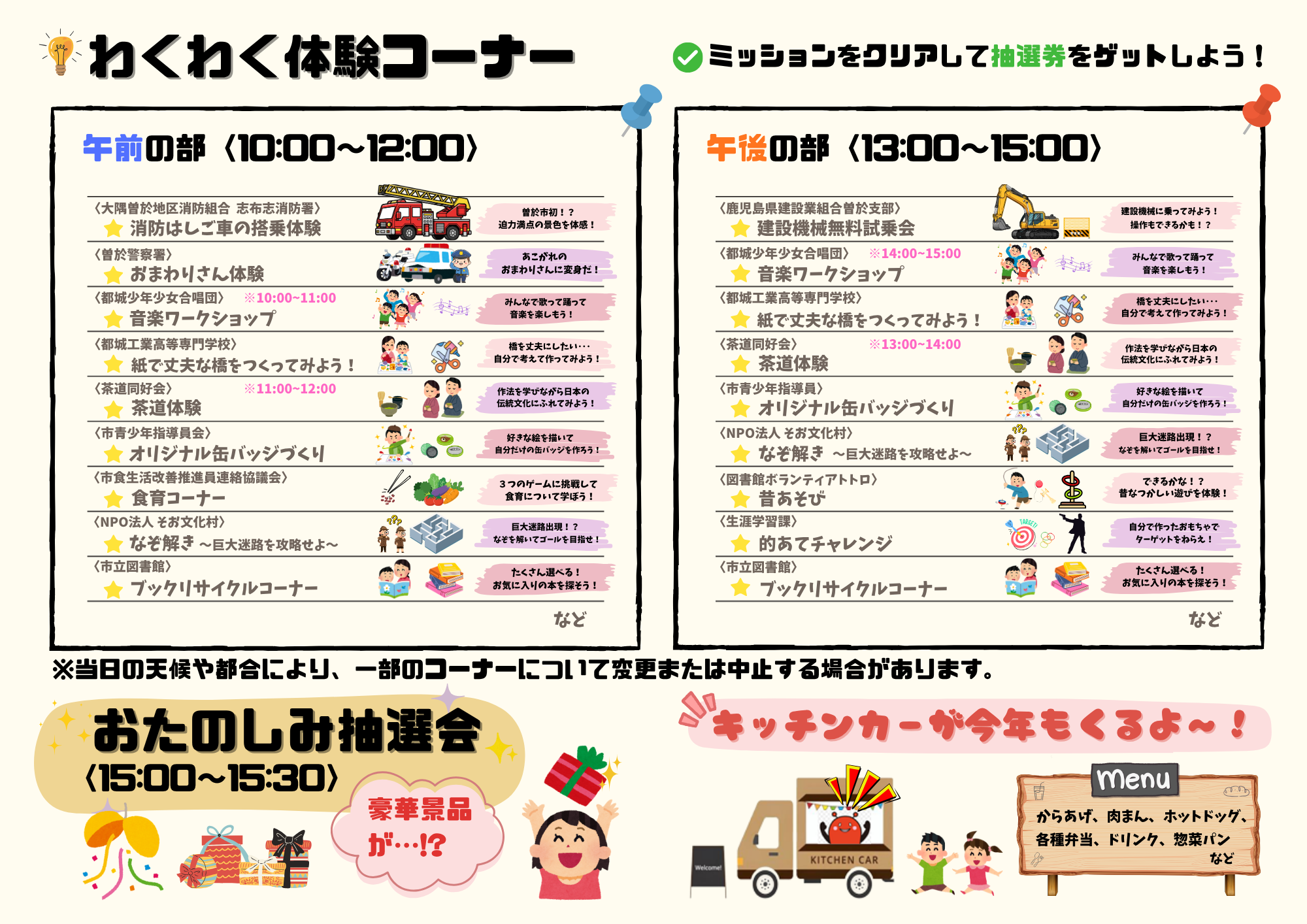 わくわく体験コーナー、お楽しみ抽選会