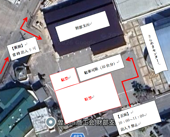 財部支所については、10時から11時の間は、裏側から入っていただき、一部駐車場の使用を禁止致します。