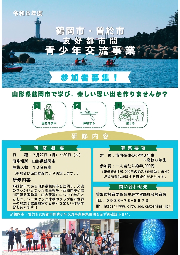 令和8年度 鶴岡市・曽於市友好都市間青少年交流事業について