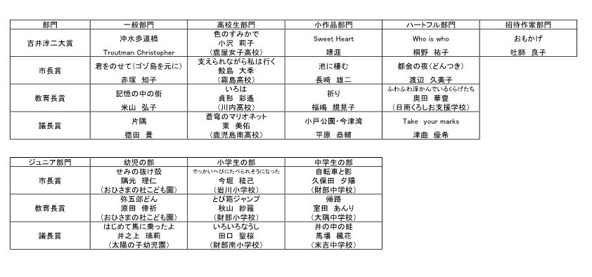 また、その他の賞や入選作品については、下記のとおりとなります。