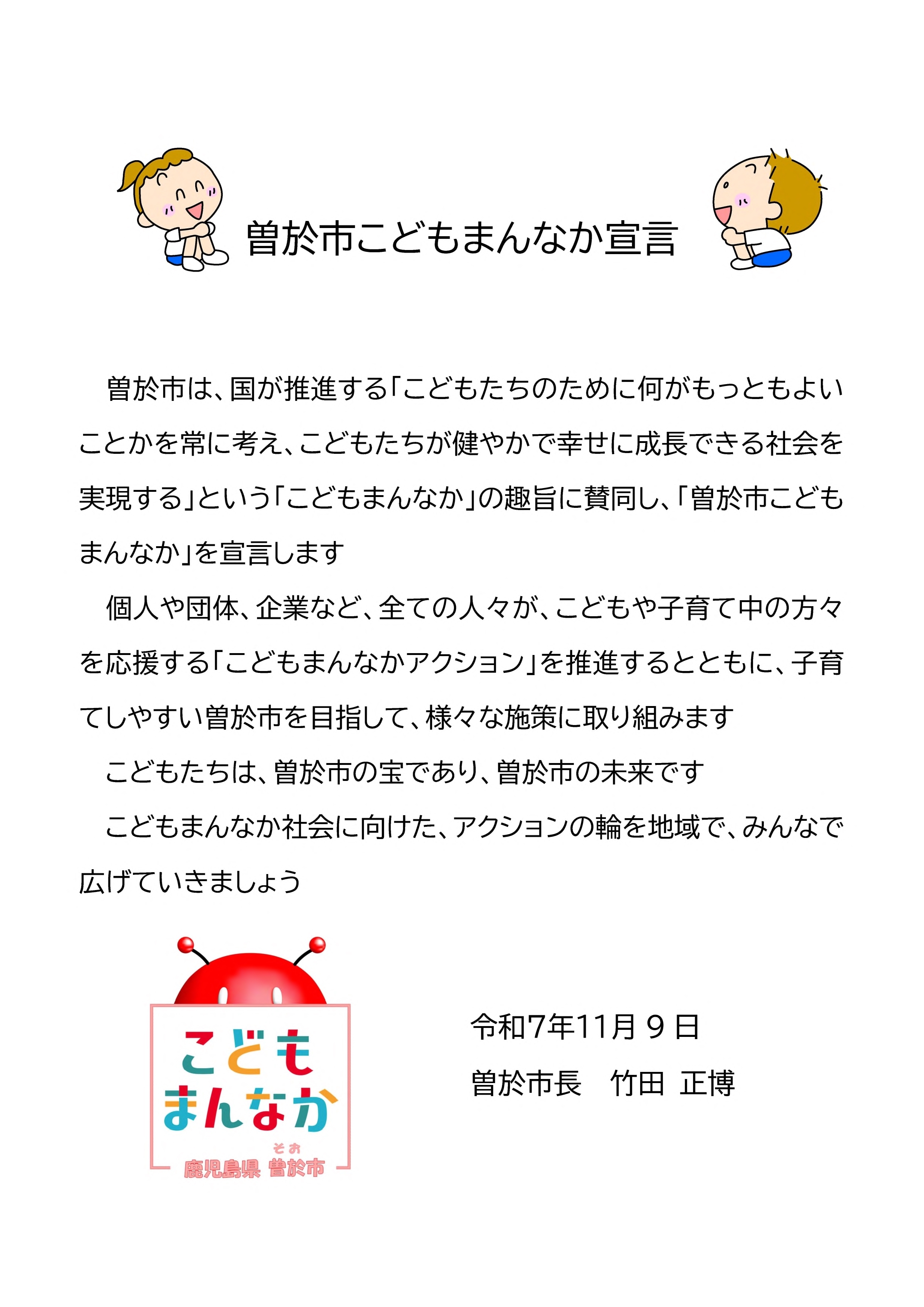 令和7年11月9日開催の「第18回思いやり曽於市民祭」において、市長が「こどもまんなか宣言」を行いました。