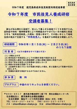 令和7年度市民後見人養成研修受講者募集!
